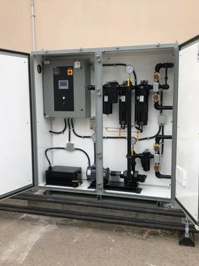 Fully automated, self-contained filtration/polishing systems equipped with high-efficiency significant capacity elements capable of quickly, conveniently, and economically removing particulate contamination and moisture. ACM Skids include a PLC-HMI controller, pump with integral relief, electric motor, highly efficient filter housings, strainers, sensors, ball valves, gauges, and wastewater holding tank, all mounted on a containment basin skid assembly. Our maximum filter housing lengths give the most dirt-holding capacity, and the coalescing filter is extremely efficient at water removal.